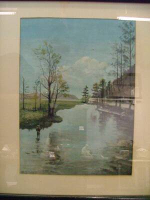 Hugo Simberg, Fiskaren. Sign.-97. Gouache 51x79 cm. Åldersrelaterat slitage. Ej examinerad ur ram. Sprickor. Läs mer...