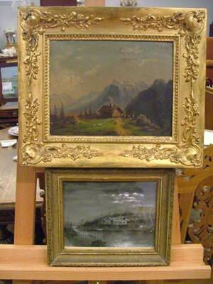 Landskap. I samtida ramar. Ramar med dekorskador, fläckar, bl.a. med färgslitage. (största mått 19x26,5) Läs mer...