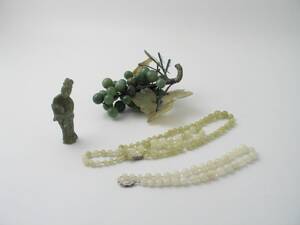 Tre kinesiske amuletter af jade. den ene rektangulær udført i hvid afgansk jade med dragemotiv 6x3,5 cm., En af mørk grøn jade fremstiller skrifttegn omgivet Läs mer...