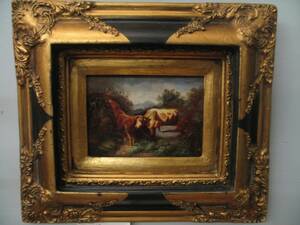 Oljemålning på duk. Signerad. Kor i landskap. 39x46 cm. Läs mer...