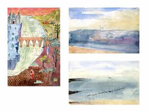 Märtha Bolin-Clason (1902-1988), S: t Brevin les pins (dubbelsidig, 1 st 1925), Drömt sagolandskap, signerade, 14x23 + 15x22 cm, 23x16 cm. Märtha Bolin-Clason, född 1902, död 1988, svensk målare.