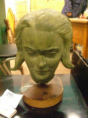 Patinerad gips, i form av kvinnohuvud, signerad A. Backlund, daterad 1926Höjd 47 cm. Skador samt färgbortfall förekommer. Läs mer...