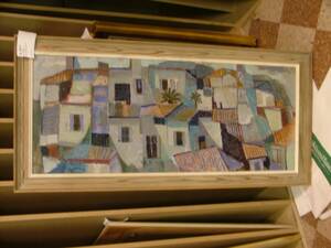 Bertil Wahlberg, Sydlänskt stadsmotiv, 39 x 94. Bertil Wahlberg, svensk svensk målare, tecknare och grafiker född 1923, död 1980 .