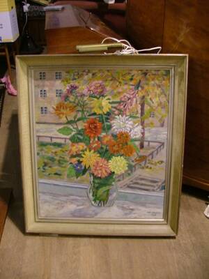 KARL DAHLQVIST (1900-1971): stilleben med blommor i vas, signerad och daterad Karl Dahlqvist 49, olja på pannå, ca 58x50 cm. 858882. Läs mer...