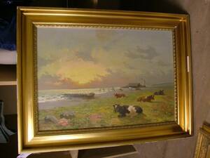 Oljemålning på pannå. "Kor vid havet". 46x61 cm. Läs mer...