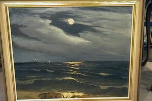 J. Löfgren, kustmotiv i månsken, 38 x 46.