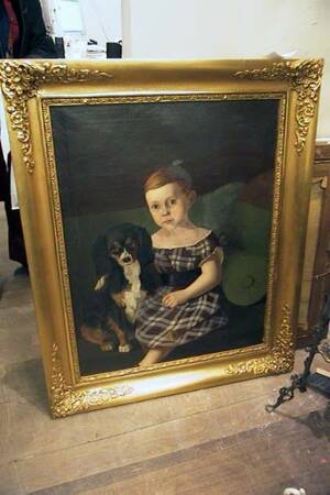 Oljemålning på duk. Flicka och hund. 60x50 cm. Läs mer...