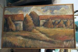 Oljemålning på duk. Figur i höstlandskap. 92x73 cm. Krackeleringar. Läs mer...
