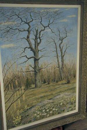 Sign F Jürgenson, Landskap med träd, 100x72.