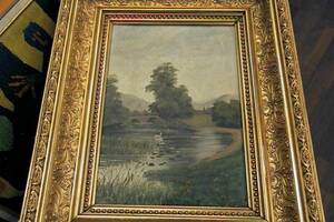 Oljemålning, Oidentifierad konstnär. Flodlandska...
