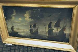 Okänd konstnär, marin, 1800-tal, pannå, 34 x 63 .
