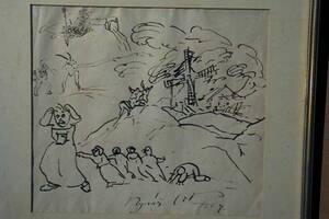 Oscar Reuterswärd, akvarell och tusch, signerad