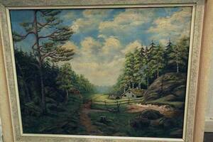 Oljemålning på duk. Signerad. Gårdsmotiv i skogslandskap. 55x43 cm. Läs mer...