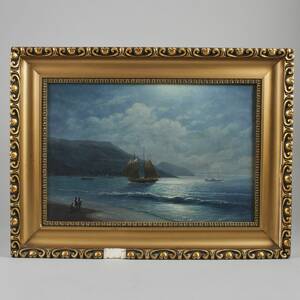 Signerad, skepp. Olja på duk, 34x50cm, yttermått inklusive ram: 51x69cm.
