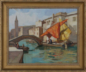 Knut Norman (1896-1977), Sverige. Motiv från Venedig. Signerad. Olja på pannå, 33x40 cm, yttermått inklusive ram: 50x58 cm. Knut Norman, född 1896, död 1977, svensk Läs mer...