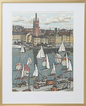 Svenolov Ehrén (1927-2004), Sverige. Stockholmsmotiv. Signerad, numrerad 233/360. Bildmått: 35x53 cm, yttermått inklusive ram: 52x66 cm. Svenolov Ehrén, född 1927 i Stockholm, död 2004, svensk Läs mer...
