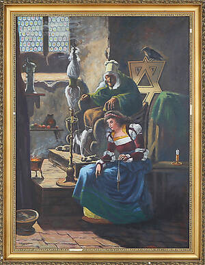 Avslutade auktioner liknande OIDENTIFIERAD KONSTNÄR. OLJA på duk, "Ung dam hos spågumman motiv från 1800-talet" signerad Thompson, 1900-tal.