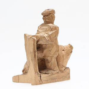 "HELMER TELEMAN. TRÄSKULPTUR, man och gris, signerad, 1900-tal."