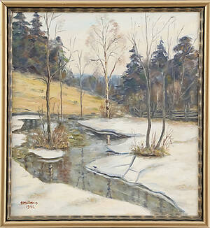 Avslutade auktioner liknande ALFRED HELLMAN. OLJA på duk,Snösmältning,signerad och daterad 1946.