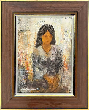 Christian Björn Larsen (1931-1993), Sverige. Flicka. Signerad, daterad -82. Olja på pannå, 68x49 cm, yttermått inklusive ram: 77x57. Christian Björn Larsen, målare född i Buenos Läs mer...