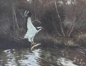 LENNART SAND. "Sportfiskare utan fiskekort", Falun, olja på duk, signerad och daterad -79.