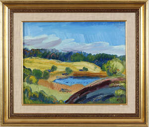 Oljemålning på pannå. Sommarlandskap. 33x41 cm.