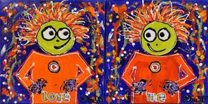 Elin Westergaard født 1951. Figurkompositioner. Akryl på lærred. Sign. Elin W. 50x50 cm(54x54 cm)(2) Läs mer...