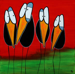 Pia Birgitte Stenderup (f. 1968). Figurkomposition, akryl på lærred, sign. PB. 80 x 80 cm. Uden ramme.