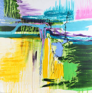 Hanne Hermann (f. 1960). Komposition, akryl på lærred, s/b. H. Hermann. 100x100 cm. UR. Läs mer...