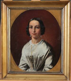 Ubekendt kunstner. Kvindeportræt. Usign. Olie på lærred. 1800-tallet. 29 x 25 (37 x 31) cm.