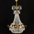 Dobbeltringkrone af bruneret messing med tre PH2/2 pendler og en PH3/2 centerpendel med skærme af gulmalet matglas, blændskærme/bundskærme af matglas, Patented universal-fatningshuse og baldakin af Läs mer...