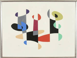 Pierre Olofsson, Komposition. Signerad Olofsson och numrerad 87/94. Färglitografi. 52,5 x 38 cm. Smärre ytslitage. Ej examinerad ur ram. Något vågigt papper. Litet märke. Läs mer...