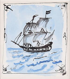 Fartyg, signerad GW, 13x11 cm. Mindre ytslitage.
