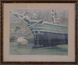 Ferdinand Boberg (1860-1946), Sverige. Signerad, vinterlandskap med brygga, 16x21 cm, yttermått inklusive ram: 28x33, akvarell. Läs mer...