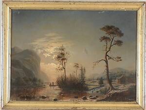 Månskenslandskap, otydl signerad 33x45 cm. Ytslitage och ytrepor.