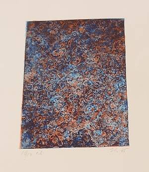 Abstrakt komposition. Otydligt Monogramsignerad. Numrerad 10/17 ex samt daterad -88. 17x13 cm. Oramad. Mindre ytslitage.