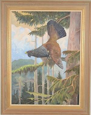 Landskap med tjäder. Signerad Kopia. S. Hagrenius 1959n 73x54 cm.