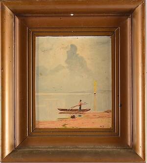 Man vid båt, monogramsignerad AS, 16x14 cm. Mindre ytslitage.