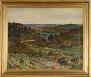 Axel Lind, Vågdal. Signerad Axel Lind. Duk 33 x 41 cm. Något vågig duk. Obetydligt färgbortfall i målningens övre vänstra hörn. Läs mer...