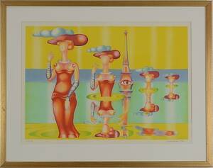 Erik Olson. Signerad, daterad 1967, ansikten. Färglitografi, bildmått: 41x60 cm, yttermått inklusive ram: 53x70 cm. Läs mer...