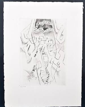 Abstrakt figurkomposition Otydligt signerad / Oidentifierad konstnär Numrerad: E.A Mått på bildyta: 15,5 x 13 cm Konditionsrapport: Inga anmärkningar. --------------------- Unknown Artist Etching 20th century Läs mer...