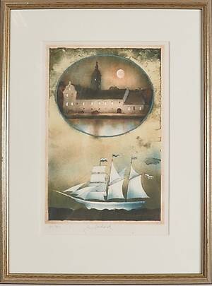 Halmstad slott. Signerad samt numrerad 49/200 ex 24x16 cm. Läs mer...