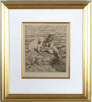 Anders Zorn, "Grunt" Etsning, 1913, signerad med blyerts. P. 29,8 x 19,8 cm. Ej examinerad ur ram, missfärgad. Läs mer...