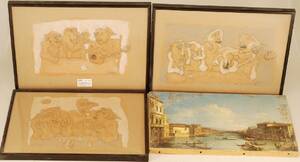 "TRE TECKNINGAR KROGSCENER SIGN RIZOS RAMMÅRR 41X31 CM SAMT TAVLA VENDEIG"