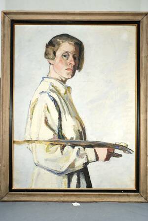 Avslutade auktioner liknande OIDENTIFIERAD KONSTNÄR, 1900-TALETS FÖRSTA HÄLFT, KONSTNÄRSPORTRÄTT, OLJA PÅ DUK, BILDMÅTT 87 X 67 CM