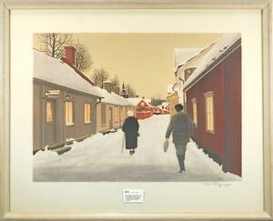 Avslutade auktioner liknande REINHOLD LJUNGGREN (1920-2006), VINTERGATA, TROSA, SIGNERAD OCH NUMRERAD 121/360, FÄRGLITOGRAFI, 34X48 CM