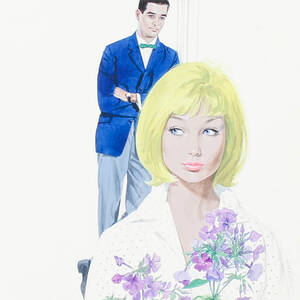 50 x 70 cm. 'The Golden Bubble', för Vecko-Revyn 44/1960. Säljes oramad. Slitage av originalillustration kan förekomma. Avhämtas efter avslutad försäljning på Bålsta Auktionshall, alternativt på utlämningsplats i Vasastan efter överenskommelse.