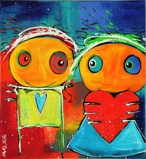 Saline. Figurkomposition. Akryl på lærred. Sign. Saline. 100 x 100 cm. Uindrammet. Saline, født 1962, er ud af kunstner- og musikerfamilie, så det at udtrykke sig Läs mer...