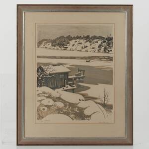 Roland Svensson (1910-2003), Sverige. Vinter i skärgården. Signerad. Bildmått: 8x13 cm, yttermått inklusive ram: 27x30 cm. Roland Svensson, född 1910 i Stockholm, död 2003, svensk Läs mer...