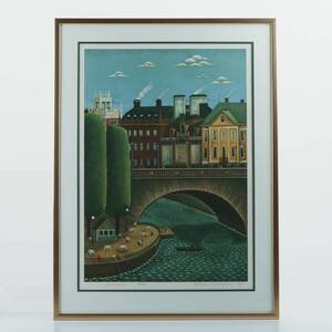 Gösta Gustavson, Norrbro. Signerad, numrerad 187/ 300, daterad 183. Färglitografi, bildmått: 58x41 cm, yttermått inklusive ram: 75x54 cm. Läs mer...